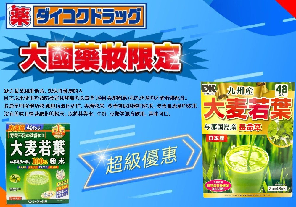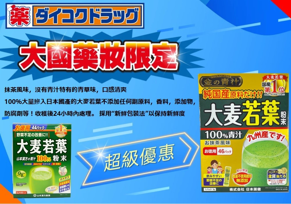 ・本產品為大麥幼葉通過用水洗淨,乾燥,滅菌和細粉加工製成的100%純粉末